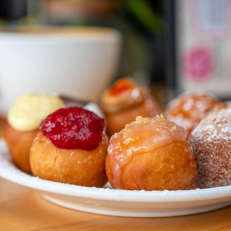 Made to order. Jelly Filled with cinnamon Sugar, Mexican Chocolate, Thai Peanut, Lemon Filled, Creme Anglaise, Salted Caramel, Maple Bacon. Gluten Free available in-store only.